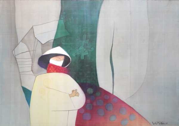 Lê Vấn chỉ vẽ trên lụa. Họa sĩ chuyên nghiệp. Tất nhiên là tay chơi “lụa” hàng đầu Tây Nguyên bây giờ, giữa một Tây Nguyên chưa bao giờ hội họa được dân mỹ thuật trong nước “nể trọng”.