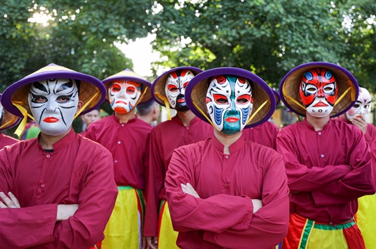 Điểm nhấn của đội hình là các diễn viên sẽ vào vai nhân vật tuồng, mặc trang phục nhân vật, kẻ mặt nạ… tạo nên diện mạo bắt mắt và đầy thu hút.
