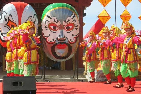 Sau lễ tri ân, các nghệ nhân, nghệ sĩ, diễn viên sẽ tập hợp thành một đội hình và thực hiện nghi lễ rước mặt nạ tuồng. Họ sẽ khoác lên mình các loại trang phục truyền thống, cầm các loại cờ xí, lồng đèn, lọng, gánh chiêng, trống cùng với đội hình Nhã nhạc, Bát Dật văn võ diễu hành và trình diễn đường phố.