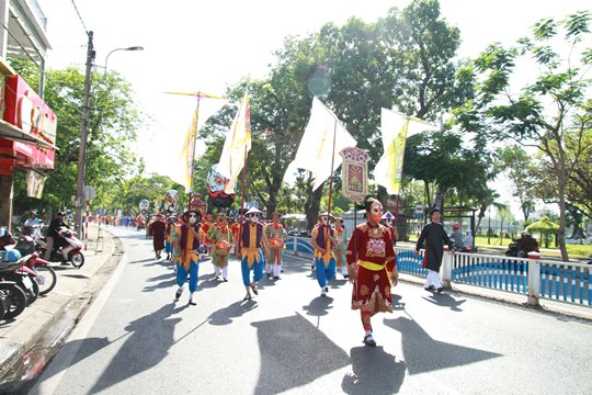 Đoàn rước di chuyển từ Thanh Bình Từ đường qua đường Chi Lăng, Trần Hưng Đạo đến Nghinh Lương Đình.Tại đây, các nghệ sĩ đã biểu diễn các trích đoạn tuồng cung đình Huế đặc sắc.