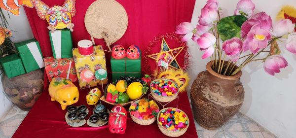 Đến với không gian trưng bày này, trẻ em có những hiểu biết, trải nghiệm về Tết Trung thu đầy sắc màu và sôi động, đồng thời khách tham quan được tìm lại ký ức tuổi thơ với mâm cỗ Trung thu truyền thống, những chiếc lồng đèn hình các con vật, những đầu lân đặc trưng xứ Huế, những con giống bột mang đủ hình thù, những chiếc bánh Trung thu quen thuộc và cả tiếng trống lân rộn rã.
