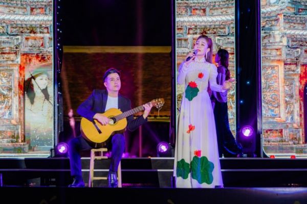 Mở đầu chương trình, khán giả đã được nghe ca khúc “Tình Huế” với hình ảnh biểu trưng như “dòng Hương, áo tím, nón bài thơ”, sáng tác của nhạc sĩ  của Nguyễn Ngọc Thạch, do Nghệ sĩ nhân dân Bạch Hạc cùng tốp múa trình diễn.