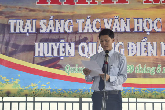 Nhà văn Hồ Đăng Thanh Ngọc - Chủ tịch Liên hiệp các Hội VHNT Thừa Thiên Huế, Tổng biên tập Tạp chí Sông Hương phát biểu khai mạc trại