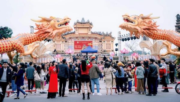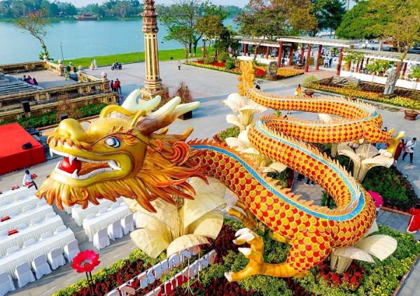 Đặc biệt, với sự đầu tư thiết kế, quá trình triển khai chặt chẽ, kỹ lưỡng, an toàn để lắp ghép hoàn chỉnh linh vật Rồng lớn nhất tại công viên trước trường Quốc Học và công viên trước trụ sở UBND Tỉnh với nhiều ý nghĩa cho một năm mới phát triển đã được nhiều lời ngợi khen từ người dân trong và ngoài tỉnh, là điểm đến được người dân du khách du xuân đến tham quan, là điểm check-in lớn nhất để lưu giữ những hình ảnh đẹp của các gia đình, bạn bè và du khách trong những ngày Xuân. Bên cạnh đó, Thành phố cũng triển khai nhiều hoạt động văn hóa nghệ thuật vào các buổi tối; trang trí trang hoàng để tổ chức Không gian trưng bày, giới thiệu sản phẩm và trình diễn nghề truyền thống Huế tại 15 Lê Lợi; triển lãm ảnh tại 23 – 25 Lê Lợi... Tất cả đã tạo nên những mảng màu tươi đẹp, rực rỡ, hấp dẫn cho toàn Thành phố dịp đầu xuân mới.