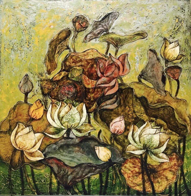 | Tác phẩm Sen hạ (Sơn mài) của họa sĩ Huỳnh Thị Tường Vân |