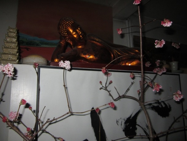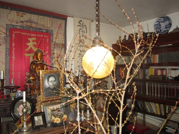 Thế là năm nay ăn Tết xa Huế, nhưng nhà lại có đủ tứ quý là Phật, Tâm, Mai, Đào, tất cả đều là tượng trưng cho chân, thiện, mỹ. Lời chúc Tết Giáp Ngọ của Thái Kim Lan.