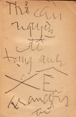 | Bút tích Hàn Mạc Tử, một ngày trước khi qua đời, ghi "thơ cầu nguyện đề tặng anh Xê. François Trí" |