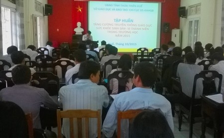 Tại Trung tâm Giáo dục Năng khiếu Văn – Thể - Mỹ, Chi cục Dân số - KHHGĐ tỉnh đã phối hợp với Sở Giáo dục và Đào tạo tổ chức tập huấn về tăng cường công tác truyền thông giáo dục sức khỏe sinh sản vị thành niên trong trường học năm học 2015-2016 cho lãnh đạo, Bí thư Đoàn các đơn vị trực thuộc Sở Giáo dục và Đào tạo.