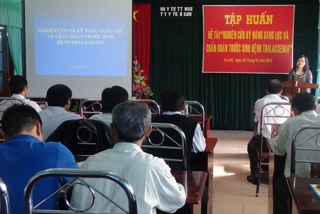 Trung tâm huyết học truyền máu khu vực – Bệnh viện Trung ương Huế tập huấn phỏng vấn, khám lâm sàng, lấy mẫu và sàng lọc bệnh Thalassemia ở phụ nữ mang thai, chẩn đoán trước sinh cho 27 cán bộ y tế là bác sĩ 21 trạm y tế và bác sĩ sản khoa, xét nghiệm, cán bộ Đội CSSKBMTE của Trung tâm y tế A Lưới.