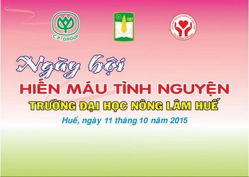 Thực hiện chương trình hợp tác giữa Trường Đại học Nông Lâm Huế và Công ty cổ phần chăn nuôi C.P. Việt Nam về việc tổ chức “Ngày hội hiến máu tình nguyện Trường Đại học Nông Lâm Huế - năm 2015”.