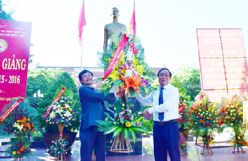 Sáng 5/9, tại các trường học trên toàn tỉnh Thừa Thiên Huế đã đồng loạt tổ chức lễ khai giảng năm học mới 2015-2016. Nét mới trong Lễ khai giảng năm nay được thực hiện theo tinh thần ngắn gọn nhưng không kém phần trang trọng, ý nghĩa, không có phần phát biểu của lãnh đạo các cấp. Ngay sau phần lễ ngắn gọn, các trường chuyển sang phần hội với các hoạt động tập thể trên tinh thần vui tươi, lành mạnh, tạo không khí phấn khởi cho học sinh và giáo viên.