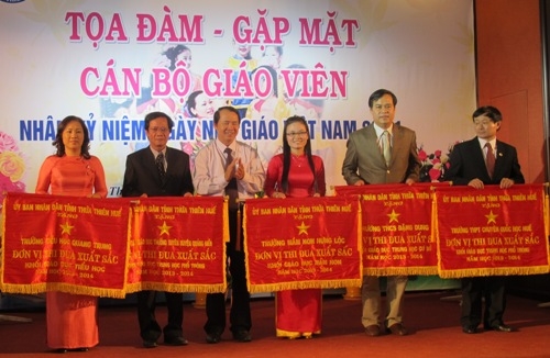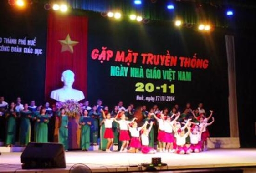 Chiều 17/11 tại Trung tâm Văn hóa TP Huế. Phòng Giáo dục và Đào tạo (GD&ĐT), Công đoàn ngành GD&ĐT TP Huế tổ chức buổi gặp mặt truyền thống nhân kỷ niệm Ngày truyền thống Nhà giáo Việt Nam 20/11.