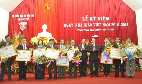 Sáng 18/11, Đại học Huế đã long trọng tổ chức Lễ kỷ niệm ngày Nhà giáo Việt Nam và công bố Quyết định của Chủ tịch Nước phong tặng danh hiệu Nhà giáo Nhân dân, Nhà giáo Ưu tú cho các nhà giáo của Đại học Huế năm 2014.
