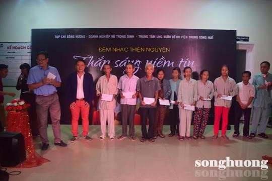 Sau phần trình diễn các ca khúc tại đêm nhạc, ban tổ chức đã tiến hành trao tặng quà cho những bệnh nhân nghèo với 20 suất, mỗi suất trị giá 1 triệu đồng, 10 suất hiện kim, mỗi suất 2 triệu đồng, và 3 suất đặc biệt, mỗi suất 3 triệu đồng. Với mong muốn có thể giúp đỡ các bệnh nhân về mặt vật chất cũng như tinh thần để vượt qua những nỗi khó khăn, đêm nhạc thiện nguyện hy vọng thắp lên một nghĩa cử cao đẹp ngõ hầu san sẻ phần nào đó những mất mát đến từ phía bệnh nhân kém may mắn.
