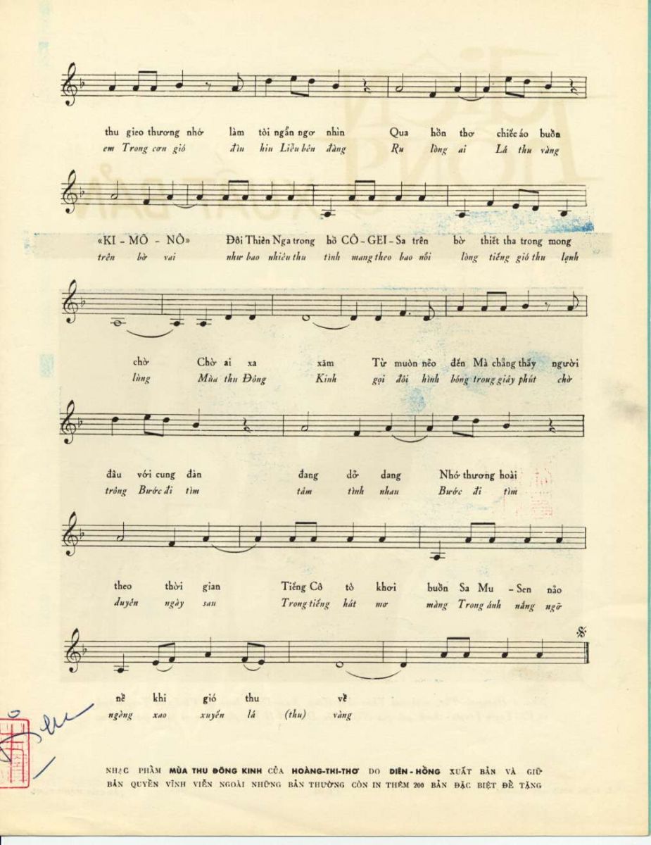 Những ca khúc của Hoàng Thi Thơ do Nxb. Tinh Hoa - Huế xuất bản năm 1956