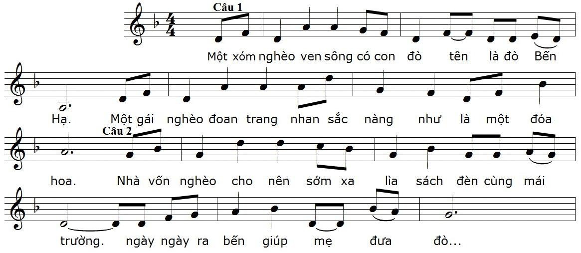 Câu 1 ở bậc chủ là Rê, câu 2 mô phỏng lên 1 quãng bốn là Son.