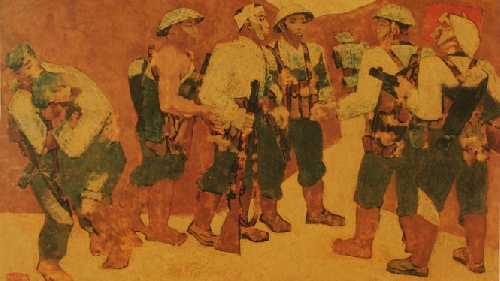 Nguyễn Sáng vẽ Kết nạp Đảng ở Điện Biên Phủ vào năm 1956, kích thước 112,3 x 180 cm, chất liệu sơn mài. Ngay sau khi hoàn thành, bức tranh đã dấy lên nhiều tranh cãi gay gắt trong giới mỹ thuật.