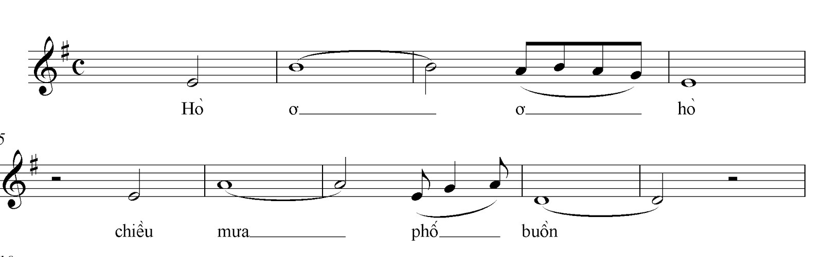 Hãy xem xét câu đầu tiên của bài Mưa trên phố Huế (nhạc: Minh Kỳ, thơ: Tôn Nữ Hỷ Khương).