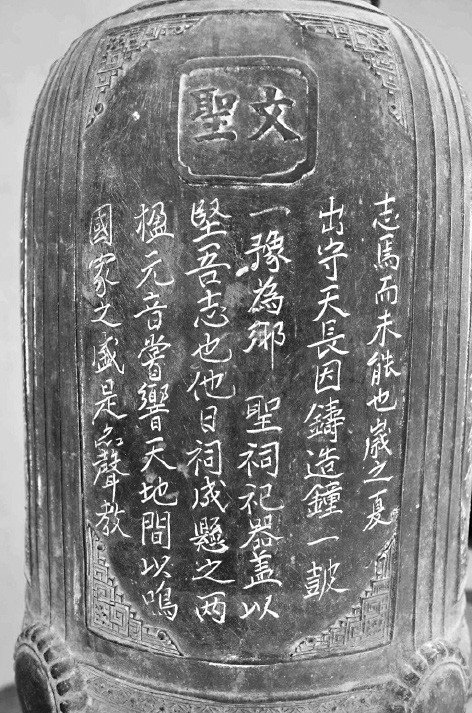 於論鼓鐘於樂辟雝, 文王以有聲也ₒ 文王既沒 , 微吾夫子萬古醉夢中人矣ₒ 迄今洙 泗鐸猶鏗乎在聞也ₒ 國朝大定來吾鄉多由科目出者, 聖道扶持之功用也ₒ 可云數畝之宮 以崇報耶ₒ 昔思自南歸, 同駙馬都尉少文兄謀之未果行, 恐越祀也ₒ 昨奉嚴闢邪教ₒ 旨 準諸地方村邑皆建聖祠ₒ 愚聞之喜然而南北惟命有志焉, 而未能也ₒ 歲之夏出守天長, 因鑄造鐘一鼓一豫為鄉ₒ 聖祠祀器蓋以堅吾志也ₒ 他日, 祠成, 懸之兩楹, 元音嘗響天 地間, 以鳴國家之盛, 是亦聲教之一助鐘鼓云乎哉ₒ