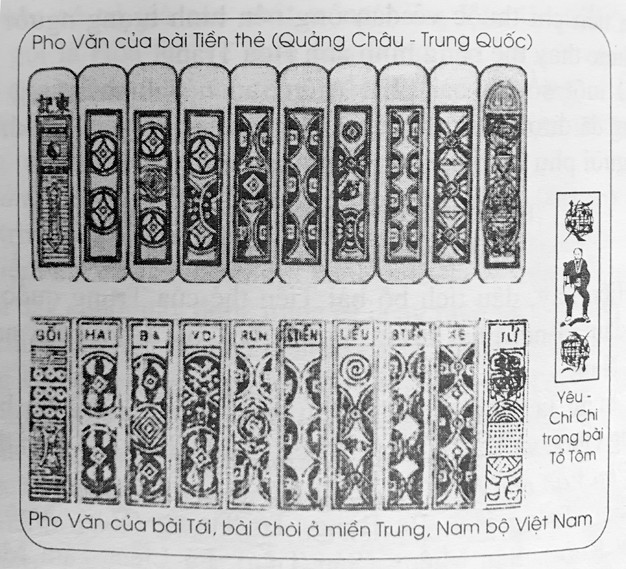 Bộ bài tiền thẻ của Trung Hoa có dấu tích rõ nét ở nước ta là ở bộ bài Tới, bài Chòi hiện nay. Nhà nghiên cứu Trần Gia Anh đã so sánh từng pho trong hai bộ bài để tìm thấy những nét tương đồng (xem hình 1, 2, 3).