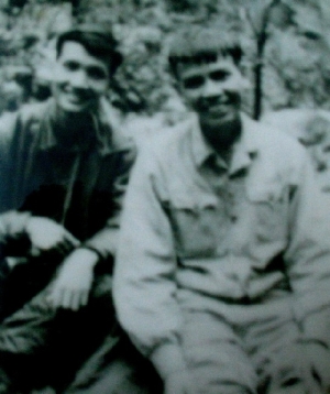 | Ảnh Ngô Kha (phải) và Tô Nhuận Vỹ ở rừng kháng chiến Tây Thừa Thiên |