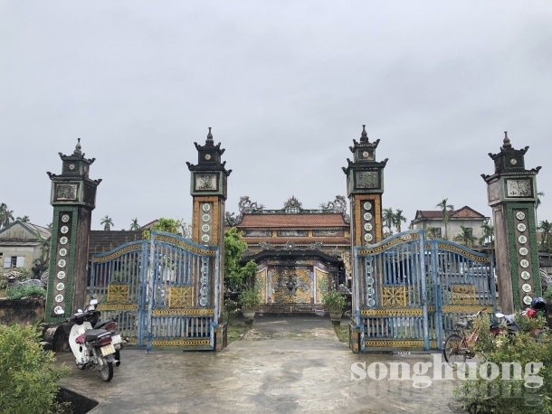 | Toàn cảnh nhà thờ họ Nguyễn Đình ở làng Bồ Điền |