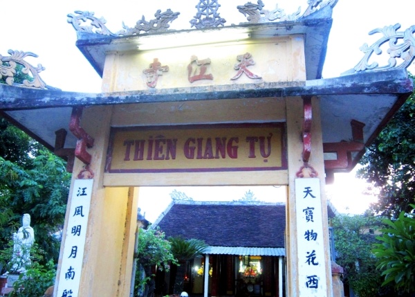 Thiên Giang tự được xem là điểm cuối của phố cổ. Ngôi chùa cổ quý hiếm. (Cũng nhiều công trình nghiên cứu tường tận các di tích ở Bao Vinh - Địa Linh - Thanh Hà; có Chùa Ông, Chùa Bà nhưng chùa Thiên Giang lại không thấy nhắc đến). Lịch sử nhiều biến động, nhất là giai đoạn tiêu thổ kháng chiến năm 1946, chùa cũng nhiều tổn hại, tiếc nhất là sắc phong đã mất hoặc thất lạc nên cội nguồn chưa thấu tỏ. Bức hoành phi Thiên Giang Tự ở chánh điện, dòng lạc khoản ghi “Minh Mạng thập cửu niên Mậu Tuất” (1838), trong lúc bức thờ Quan Công bên phải ghi “Tự Đức năm Kỷ Dậu” (1849); phần nào chứng tỏ chùa được lập trước đền và đây không là sản phẩm thờ “vĩ nhân” người Hoa mang từ bản quán thời gian họ tới Bao Vinh sinh sống. Trong số câu đối được ghi trên các trụ biểu, có một cặp rất thâm thúy: “Nam hải liên hoa cửu phẩm hương/ Tây phương lục trúc thiên niên thúy”. Tây phương là cõi Cực Lạc lại gắn với lục trúc (loài cây ở cõi trần). Còn Nam hải (ngụ ý chỉ Ta bà hay như kinh Phật gọi địa cầu là Nam diêm phù đề) lại gắn với liên hoa (vốn được xem là “quốc hoa” ở cõi Tịnh). Dĩ nhiên câu đối này có thể hiểu theo hướng khác, song thiết nghĩ tác giả muốn gửi gắm cái triết lý: cõi Phật và Trần ai đều “Phàm thánh đồng cư”; khác là ở tâm người tịnh hay nhiễm. Tâm tịnh thời cõi Phật tịnh.