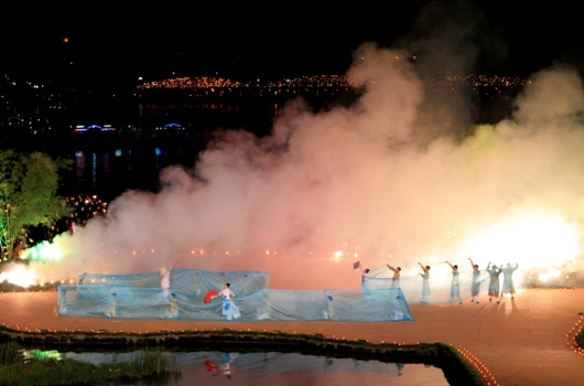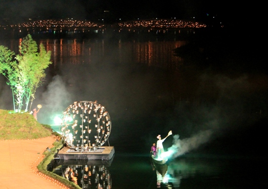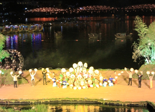 Tối 18/4, cầu Tràng trở nên lung linh, huyền ảo bởi hàng ngàn ngọn nến được thắp sáng do chính tay Đoàn nghệ thuật sắp đặt lửa nổi tiếng thế giới Carabosse đến từ Cộng hòa Pháp thực hiện.