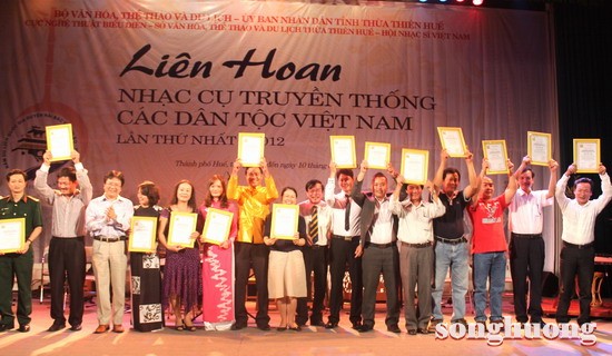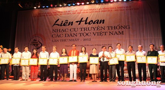 Sau 6 ngày diễn ra sôi nổi, tối ngày 10/6, tại Nhà Văn hóa thành phố Huế, Liên hoan nhạc cụ truyền thống các dân tộc Việt Nam lần thứ 1 - 2012 đã Bế mạc và trao giải cho các đơn vị, cá nhân có tiết mục tham dự xuất sắc.