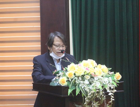 Nhà văn Hồ Đăng Thanh Ngọc - Chủ tịch Liên hiệp các Hội VHNT tỉnh, Trưởng đoàn trại sáng tác phát biểu đánh giá tác phẩm