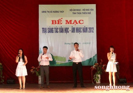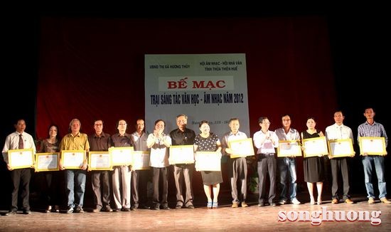 SHO - Chiều ngày 18/8, Hội Nhà văn, Hội Âm nhạc Thừa Thiên Huế và Ủy ban nhân dân thị xã Hương Thủy đã tổ chức bế mạc Trại sáng tác Văn học - Âm nhạc (Hương Thủy) năm 2012, diễn ra tại Trung tâm Văn hóa - Thông tin thị xã Hương Thủy.