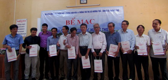 | Các văn nghệ sĩ cùng lãnh đạo thị xã Hương Trà - Xã Hương Thọ chụp ảnh lưu niệm |