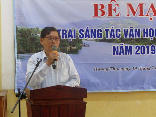 | Nhà văn Phạm Xuân Phụng trình bày tác phẩm của mình tại buổi bế mạc |