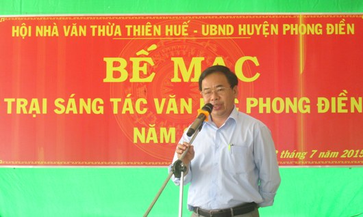 Nhà văn Hồ Đăng Thanh Ngọc - Chủ tịch Hội Nhà văn Thừa Thiên Huế phát biểu tại lễ bế mạc trại sáng tác Phong Điền năm 2015