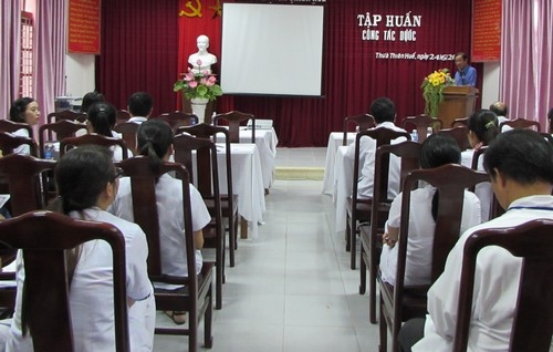 Trung tâm Y tế Dự phòng vừa kết hợp với tỉnh Đoàn, thành Đoàn Huế tổ chức lớp tập huấn về phòng chống dịch Sốt Xuất huyết, MERS CoV, Tay Chân Miệng…. với sự tham gia hơn 100 Đoàn viên thanh niên của thành phố Huế và các sinh viên đến từ các trường Đại học đóng trên địa bàn thành phố Huế.