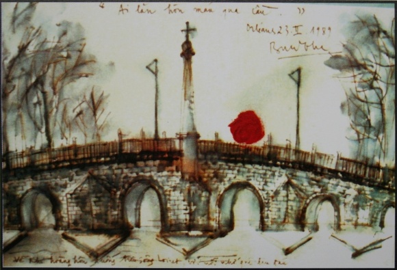 Làm nhớ bức Ai lăn hòn máu qua cầu, Bửu Chỉ vẽ ở Orléans tháng 2 năm 1989. Chiếc cầu trắng trên sông Loiret trước nhà Đặng Tiến với mặt trời chiều đỏ thắm, nơi nhiều bạn bè đã ghé qua, ghi dấu những bước chân và tay vịn vai cầu. Tôi còn giữ bức ảnh Bửu Chỉ chụp ở Orléans gởi về, với lời ghi câu của Tagore: “…aujourd’hui un oiseau m’a montré le chemin, m’ a conduit de la forêt jusqu’aux rives de l’océan de joie… Tout a coup mon âme s’est ouverte” (…hôm nay một con chim đã vạch cho tôi con đường, dẫn tôi ra khỏi khu rừng đến những bến bờ của đại dương niềm vui… Bỗng nhiên tấm lòng tôi rộng mở).