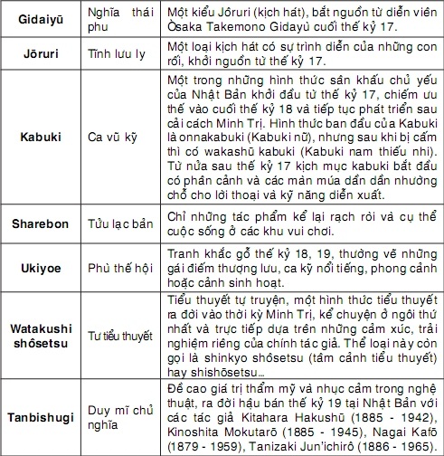 (32) Thuật ngữ này từ danh từ Ukiỳo đã trở thành tính từ, mang nghĩa phù phiếm, phù du và mang tính chất mới lạ, chuyển biến. Nói đến ukiỳo là nói đến sự tận hưởng cuộc sống trong tiền và quyền. Tính mỹ học của nó nằm trong trường biểu hiện của Mono no aware, vượt ra ngoài khuôn khổ duy lí và luân lí Khổng giáo, gắn liền với tên tuổi của tư tưởng gia Motoori Norinaga (1730 - 1801).