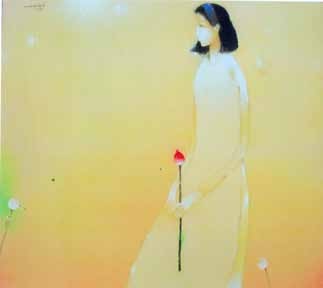 | Thiếu nữ và hoa sen (Sơn dầu trên vải) |