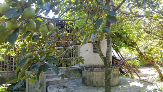 | Nhiều cây hồng trĩu trái bên cạnh giếng nước cổ sau nhà |