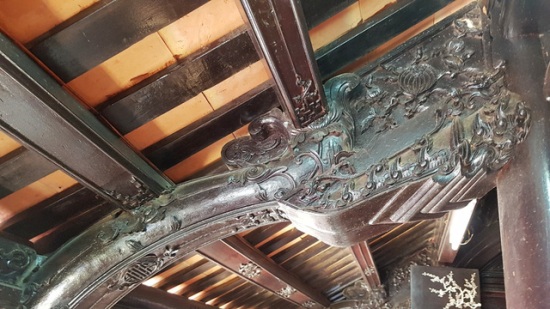 | Những kèo gỗ chạm trổ hình hoa lá tinh xảo |