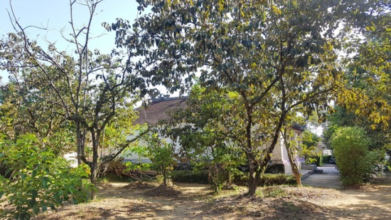 | Phía sau ngôi nhà rường là khu vườn rộng và nhiều cây xanh, cây ăn quả |