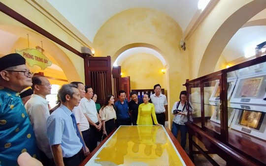 | Đại biểu tham quan những tư liệu quý trưng bày tại Tàng Thơ Lâu |