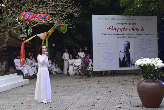 Chiều ngày 1/4, Tạp chí Sông Hương phối hợp với Bảo tàng Văn hóa Huế, những người bạn thân thiết của cố nhạc sĩ Trịnh Công Sơn, các cựu nữ sinh Huế đã tổ chức Chương trình văn nghệ “Hãy yêu nhau đi”.