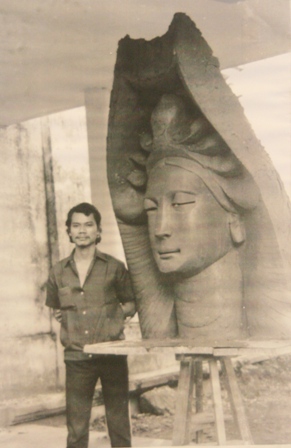 | Lê Thành Nhơn thời trẻ khi làm tượng Quan Thế Âm - Ảnh: internet |