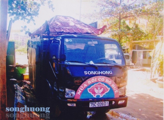 Nhìn đoàn xe của “gánh rối nước” rong xứ Huế đang bon bon trên mọi nẻo đường dài, làm những bà con quanh đây đều lưu luyến đưa ánh mắt trìu mến nhìn theo. Đi đầu là chiếc xe 14 chỗ chở diễn viên, do chính GĐ-ĐD Phi Tuấn kiêm luôn tài xế cầm tay lái, hai bên thành xe có gắn theo dòng chữ lớn “Nhà hát Múa rối Cố đô Huế”. Nối theo sau là chiếc xe tải bán trung chở con rối và đồ nghề sân khấu... Song cái ngộ nghĩnh và rất rối nữa là chiếc mái nhà thủy đình của sân khấu rối nước, nay lại được đặt lên trên tạo thành cái nóc thùng xe tải để che mưa, che nắng cho con rối và mọi đồ nghề...