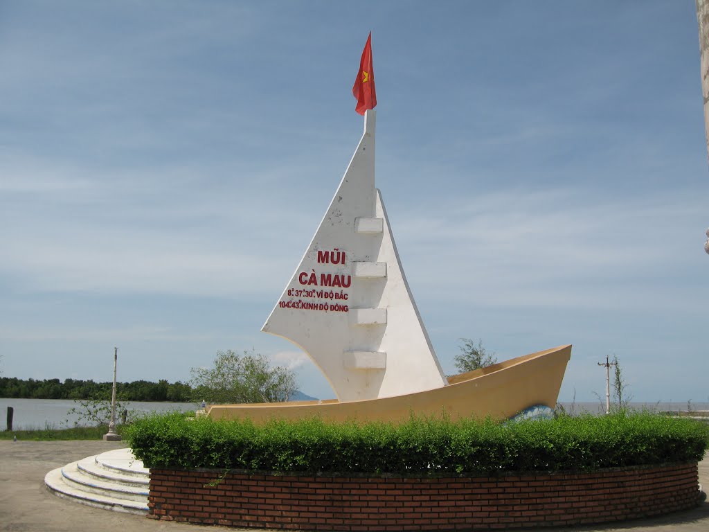 Rời Cần Thơ, chúng tôi lên xe đi Cà Mau! Hai bên bờ lại trải dài những con kênh và những hàng dừa bát ngát uốn lượn theo gió. Thành phố Cà Mau đón chúng tôi bằng tượng đài hình cây lúa sừng sững giữa thành phố. Hệt như lời cô hướng dân viên đã thông báo: thành phố Cà Mau chả có gì nhiều để thăm thú, có chăng là phải đi sâu về các vùng miệt vườn như U Minh thượng, U minh hạ… để thăm chim đậu! Chúng tôi dùng «tàu cao tốc», hay đúng hơn là ca nô cao tốc ra mũi Cà Mau. Hai bên bờ, dầm chân trong nước là những hàng cây đước, cây bần và các cây sú vẹt… Những ngã ba sông mênh mông, nước chảy cuồn cuộn hút tầm mắt. Những tấm lưới giăng đâu đó chìm dưới sông mà chỉ có một cây cọc trồi lên làm điểm mốc, những ngôi nhà chòi chơ vơ, những chiếc thuyền lá mong manh… Thi thoảng thấp thoáng hai bên bờ là những mái chùa Khmer đa sắc rực rỡ dưới ánh nắng, nền sân chùa gần như mấp mé mặt nước, cảnh tượng sơn thủy hữu tình! Anh lái tàu miền sông nước vui tính chạy rất nhanh. Lúc đầu nhóm chúng tôi cũng rất thích thú, nhưng rồi như không hẹn mà gặp, tôi cùng một chị (người Hà Nội) cùng nhổm lên hỏi anh xem áo phao anh để ở đâu? «Hổng có!», anh lại cười khoái chí đáp lại, tôi thoạt đầu nghĩ anh nói đùa, nhưng nhìn quanh quất khắp ca nô, tôi không thấy bóng dáng chiếc áo phao nào cả! Giờ thì tôi lại hiểu tôi hiểu thêm tại sao lại có những cái chết đáng tiếc trong những những tai nạn tàu xuồng xảy ra mới đây. Thật ra, điều đáng tiếc xảy đến đa phần la do sự bất cẩn của con người thôi! Từ thành phố Cà Mau xuống Mũi là 115 km, đi mất chừng ba giờ đồng hồ.