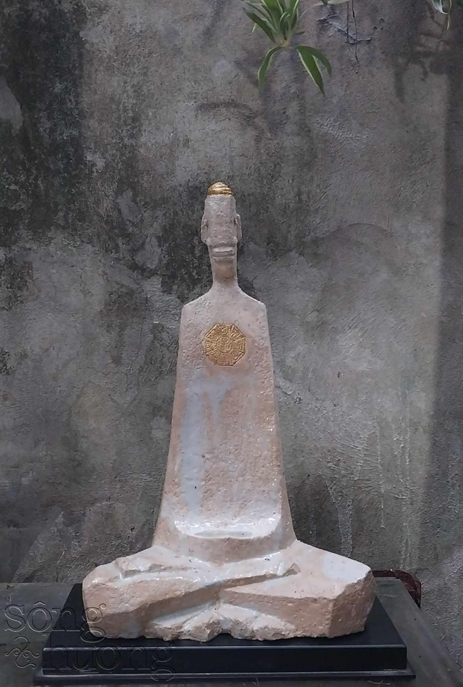 Bức tượng có tên “Thiền tập” gợi nhắc người xem hình ảnh thiền giả ngồi tư thế kiết già (Padmāsana), thân và đế tượng như các tam giác nối ghép lại, phần đầu là hình chiếc thuyền vô trú giữa hư không.