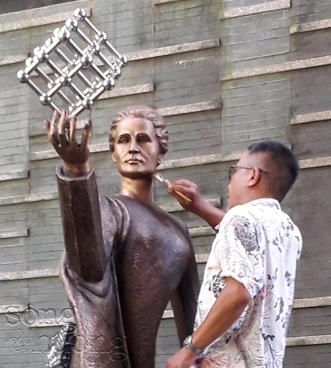 Bức tượng nữ bác học Marie Curie, có phong thái lãng mạn, uyên bác và gợi tưởng đến tinh thần của đối tượng được sáng tác.