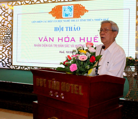 | Nhà nghiên cứu Trần Đại Vinh - Chủ tịch Hội VNDG Thừa Thiên Huế - trình bày báo cáo tình hình thực hiện công tác nhiệm kỳ 2015 - 2020 |