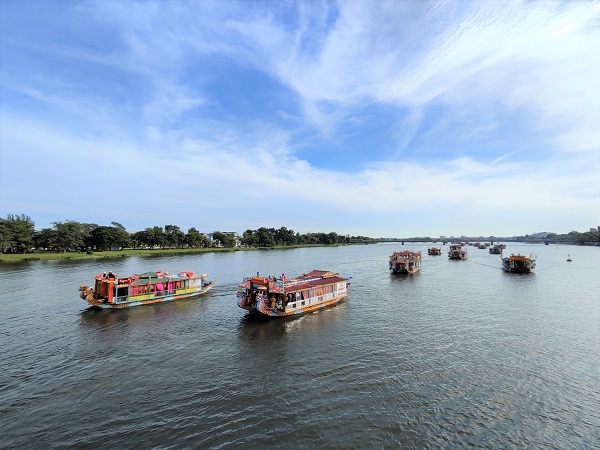 | Đoàn thuyền rồng rước Thánh Mẫu đi trên sông Hương |